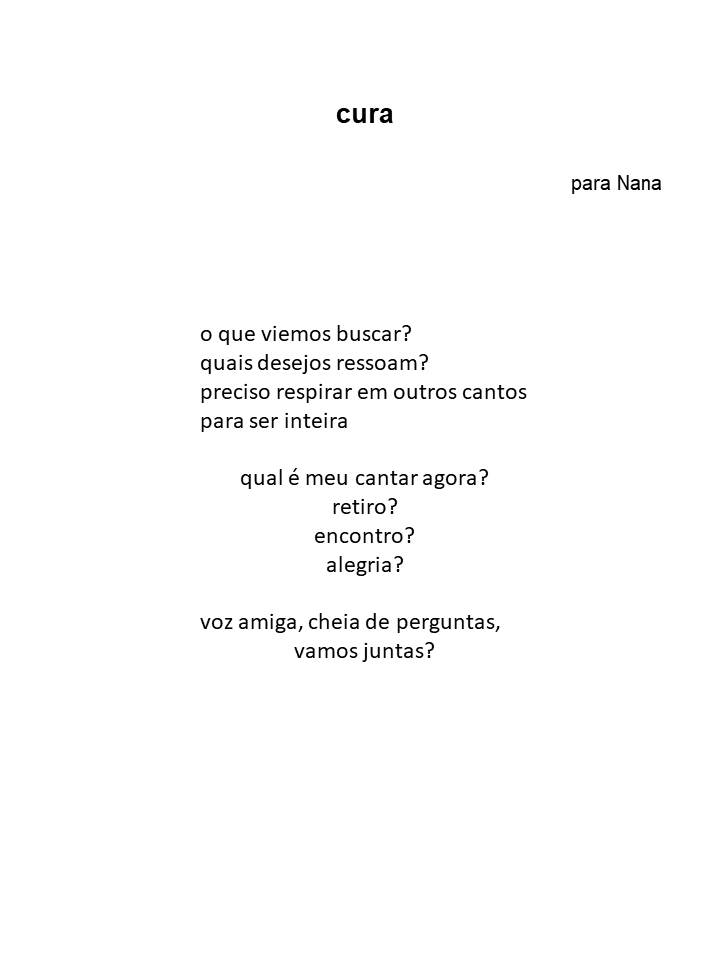 estes poemas nasceram instantaneamente como repostas a exercícios-perguntas individuais apresentados na imersão Corpo-Voz-Escuta conduzida por Renata Gelamo e Bruna Queiroz Prado no Espaço Narayan em setembro de 2022